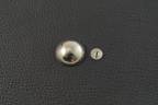 Die runden Ziernieten - Zierelemente - 273 haben einen Durchmesser von ca. 18 mm und eine Höhe von 8 mm. Die Oberfläche ist silberfarben. Niete und Gegenstück können mit einem Hammer zusammen geschlagen werden.